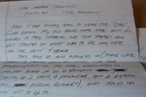 Since he has NO internet access, and it’s just me typing his entries, he likes hearing how the blog develops. Unfortunately, for almost two weeks I have been unable to update the posts. The reality is I have a large stack of letters from him, but with my normal writing life, I’m usually exhausted when I come around to do this.